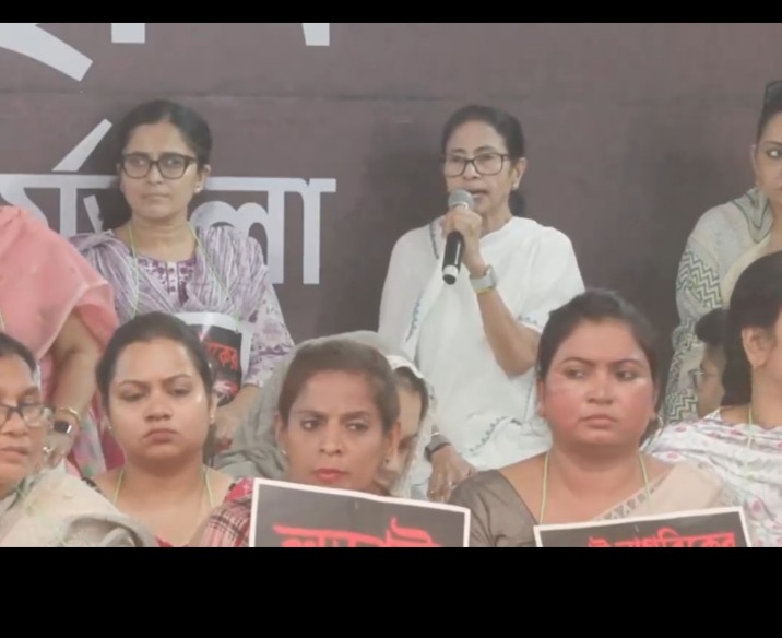 ধর্ণার চতুর্থ দিন বিস্ফোরক অভিযোগ করলেন তৃণমূল সুপ্রিমো তথা মুখ্যমন্ত্রী মমতা বন্দ্যোপাধ্যায়। মঞ্চ থেকে তিনি বলেন, বিজেপির তরফে ধর্নামঞ্চের আশেপাশে লিফলেট বিলি করা হচ্ছে। এজেন্সিকে দিয়ে এ কাজ করানো হচ্ছে বলেও দাবি করেন তিনি। এরপরই অভিযুক্তদের হাতেনাতে ধরার নির্দেশ দেন মমতা। মন্ত্রী শশী পাঁজাকে দ্রুত এফআইআর করতে বলেছেন তিনি।একই সঙ্গে সকলকে আশেপাশে নজর রাখার নির্দেশও দেন তিনি। জানা গিয়েছে ইতিমধ্যেই একজনকে হাতেনাতে ধরা হয়েছে।এসআইআরে লক্ষ লক্ষ বৈধ ভোটারের নাম বাদ দেওয়ার প্রতিবাদে ধর্মতলায় ধর্নায় বসেছেন তৃণমূল সুপ্রিমো তথা মুখ্যমন্ত্রী মমতা বন্দ্যোপাধ্যায়। রাতে ধর্নামঞ্চেই থাকছেন তিনি। সোমবার সকালে মঞ্চ থেকেই বিস্ফোরক অভিযোগ করেন তিনি। জানান, ধর্নামঞ্চের আশেপাশে বিজেপির তরফে লিফলেট বিলি করা হচ্ছে। মমতা বলেন, “বিজেপি ধর্নামঞ্চের কাছে লিফলেট বিলি করাচ্ছে। এদের হাতে নাতে ধরতে হবে। গলায় দড়ি দিয়ে মারা উচিত ওদের বলেও হুঁঙ্কার দেন তিনি। ভোট চোর বলে কটাক্ষ করেন মমতা। শশী পাঁজাকে দায়িত্ব দেন এদের বিরুদ্ধে এফ আই আর করার জন্য। তারপরেই তিনি বলেন এখানে ওদের ঢোকার অধিকার নেই। অন্যায় করলে ফোঁস করতে হয়। এদের হাতে নাতে ধরুন।