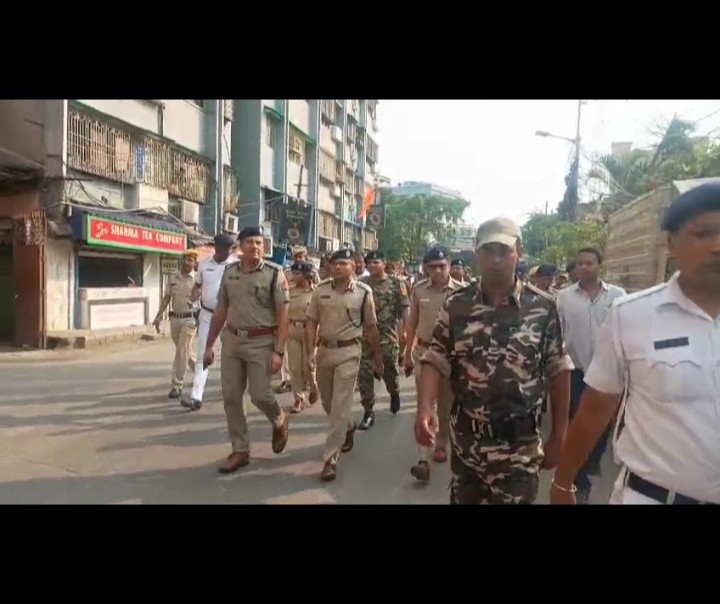 রামনবমীর আগে কড়া নজরদারি, শিবপুর থেকে সন্ধ্যাবাজার পর্যন্ত জি টি রোডে পুলিশের রুট মার্চ, শান্তিপূর্ণ শোভাযাত্রায় জোর